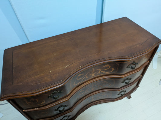 【倉庫保管】 イタリア Tarocco 3段チェスト アンティーク家具 ヴィンテージ家具 象嵌細工 猫脚 ロココ調 輸入家具