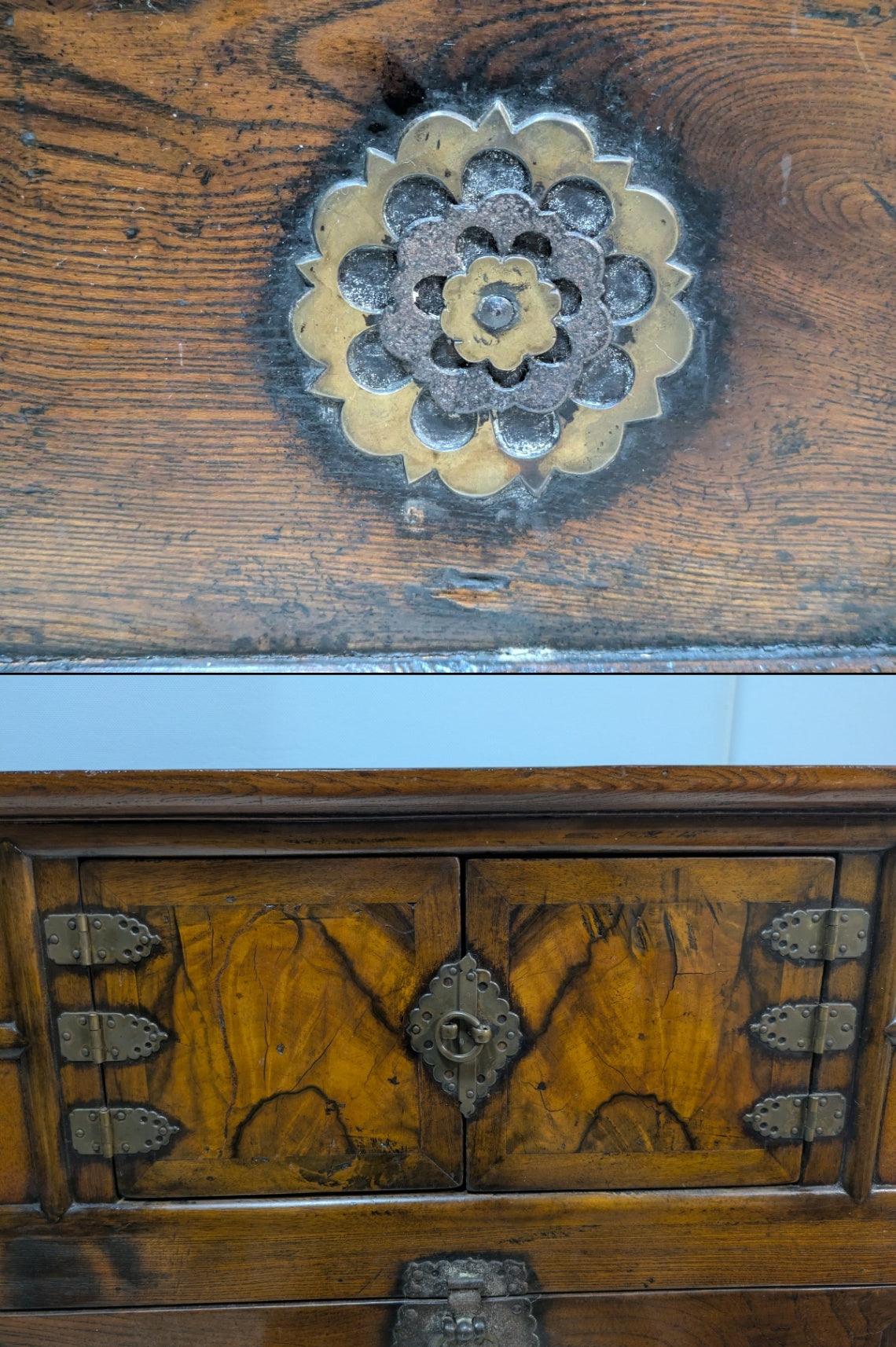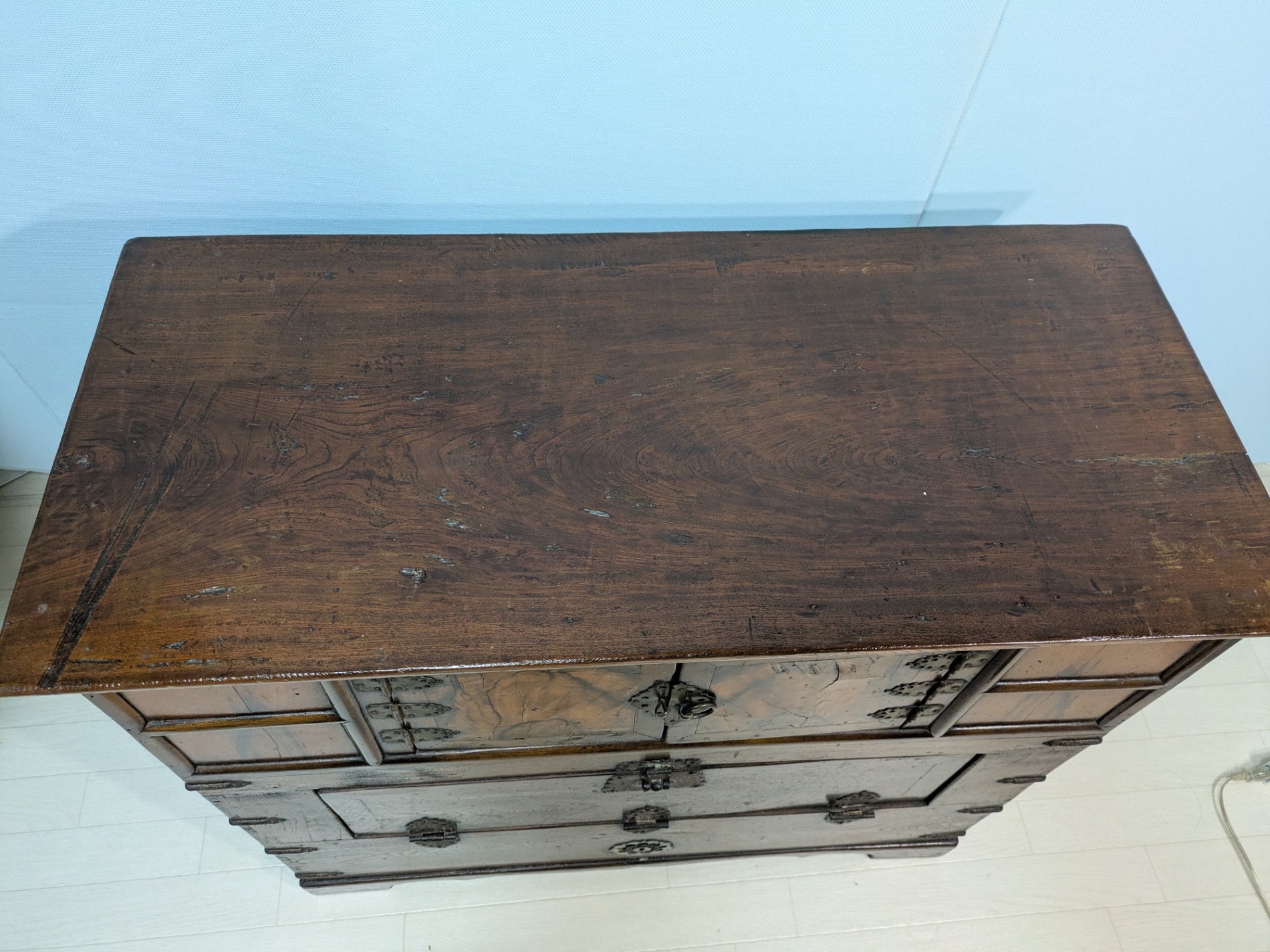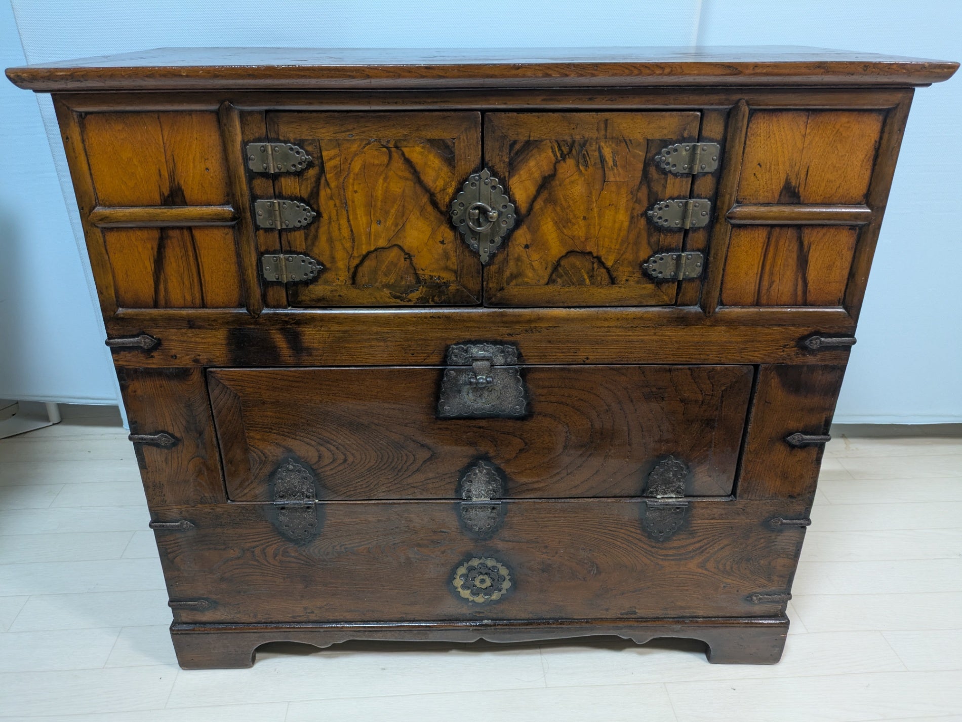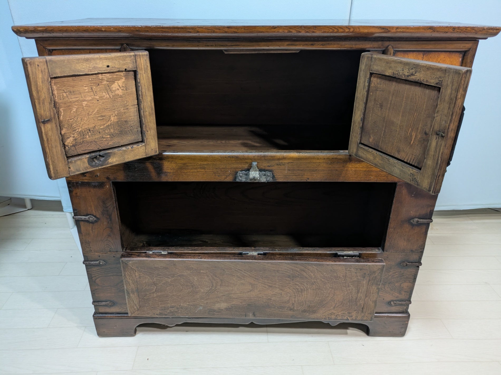 古い家具です。 フラップダウン式の扉がございます。 いゆる李朝家具の中でも「パンダジ」と呼ばれるものと思われます。