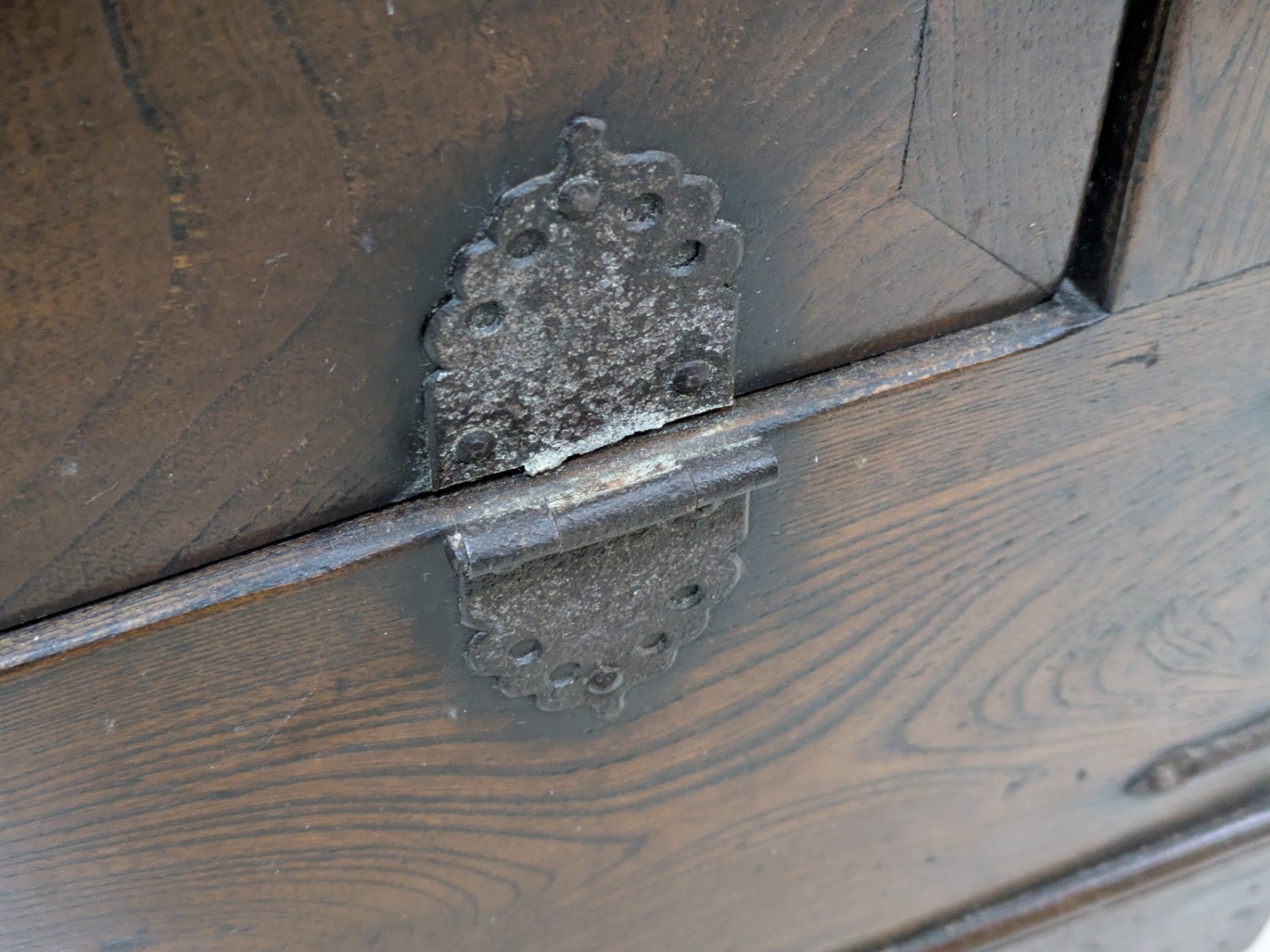 蝶番が1箇所割れてしまっております。 その他古いものですので傷・汚れ・劣化などございますが、それもまた古家具の持つ味としてお考えください。