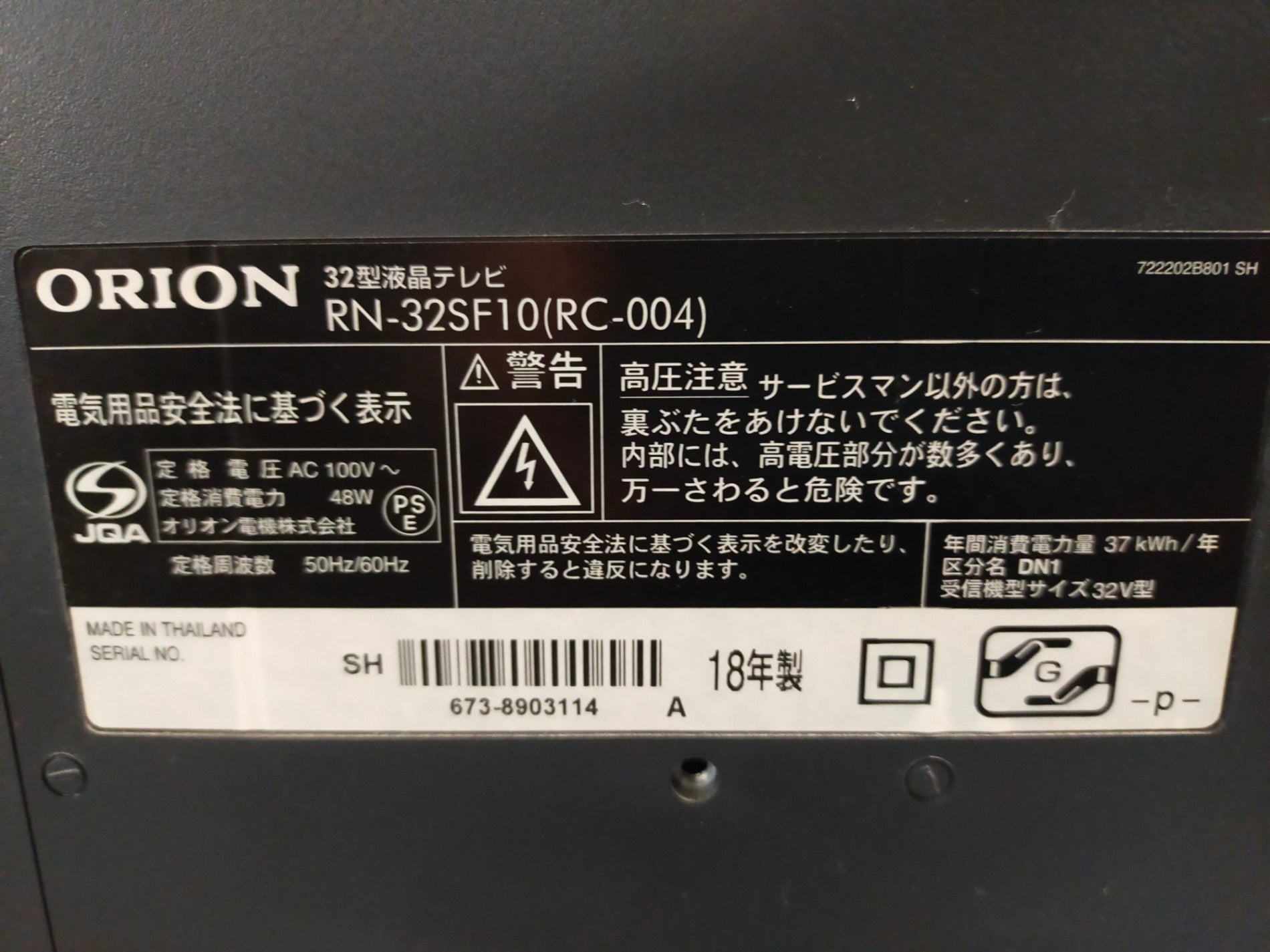 【深草店】 液晶テレビ オリオン 32V型 RN-32SF10 2018年製
