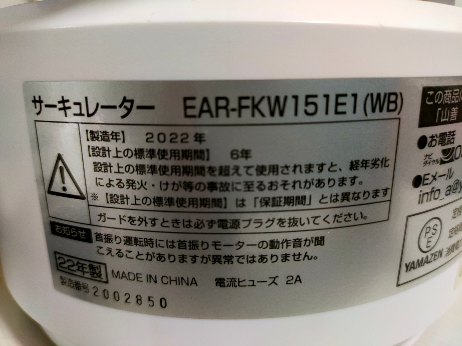 【サテライト】 サーキュレーター 山善 EAR-FKW151E1 2022年製
