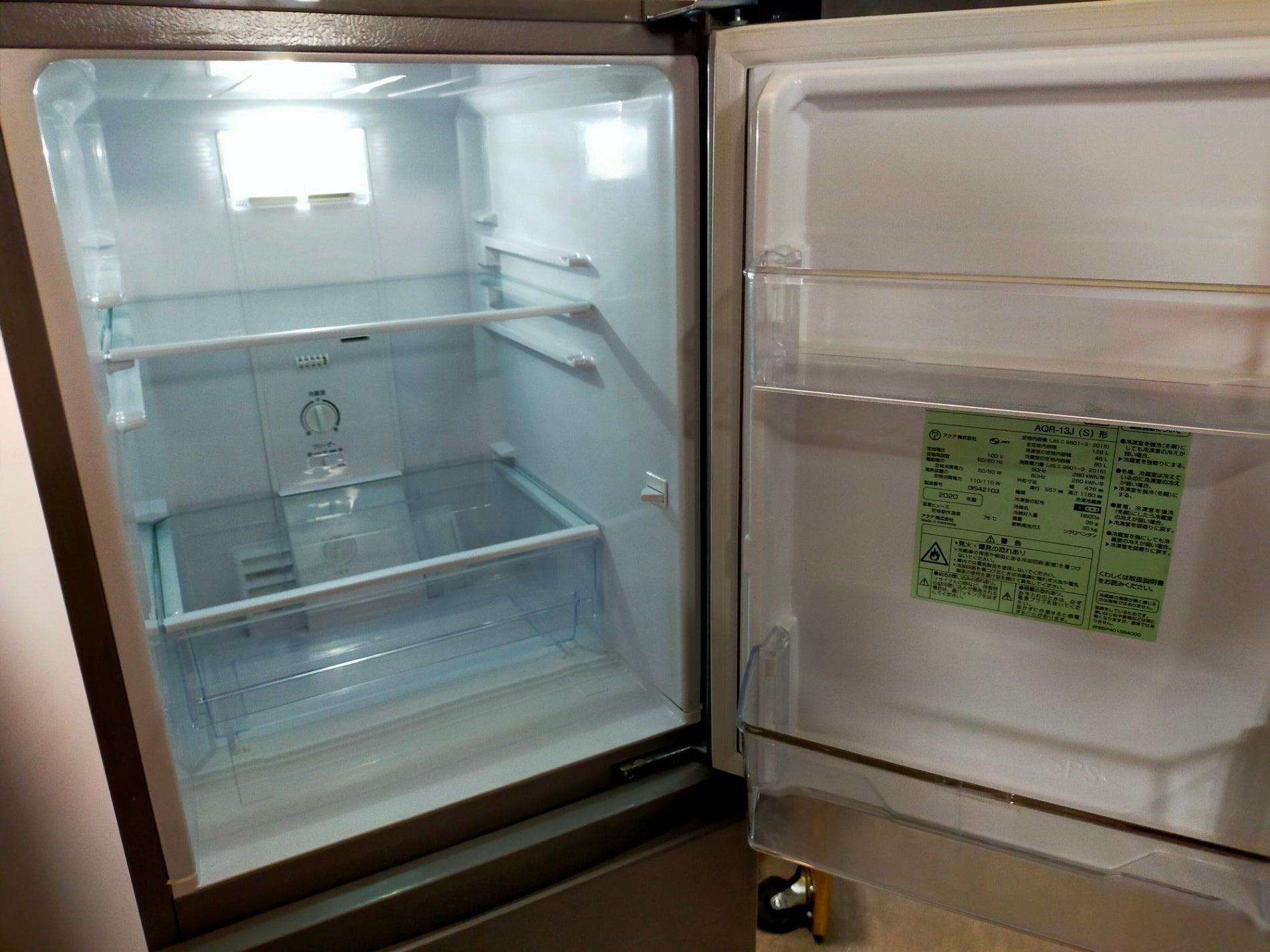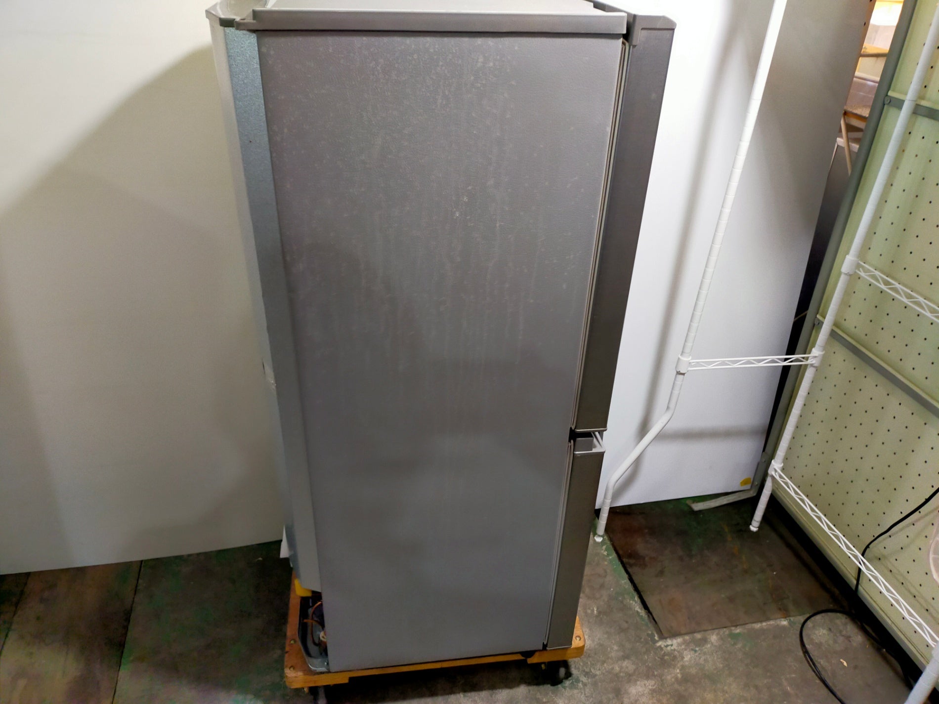 電源に繋ぎ半日以上動作させ、冷凍室・冷蔵室の各室が十分に冷える事を確認しております。庫内・外装ともに簡易清掃済みです。 上ドアに小キズ、左側面に目立つ汚れ痕、庫内ドアポケットにヒビがございます。その他使用感はございますが目立つ大きなダメージはなく、比較的きれいなお品かと思います。